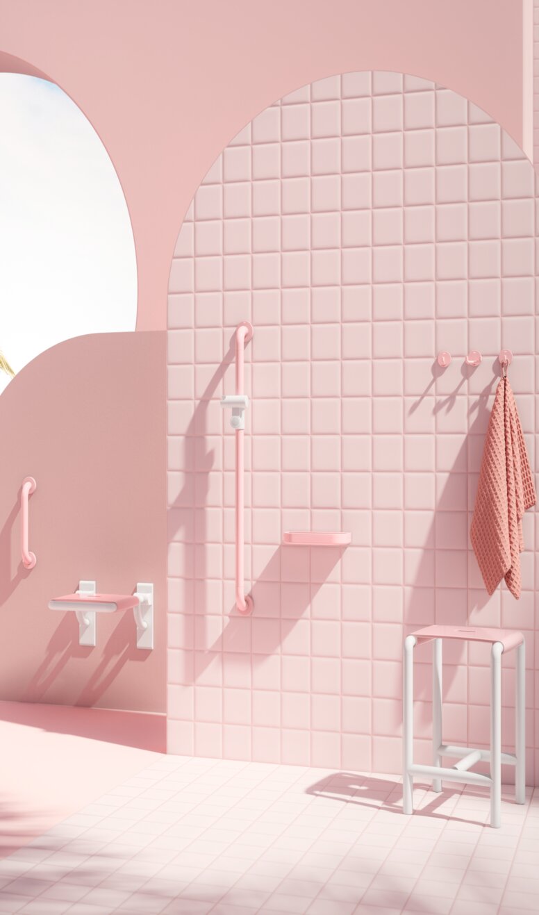 Neben dem außergewöhnlichen Design punkten die HEWI-Produkte mit durchdachter Funktionalität. Besonders barrierefreie Lösungen stehen im Fokus, um den Komfort für alle NutzerInnen zu erhöhen. Die Zusammenarbeit zwischen HEWI und Mattel unterstreicht den gemeinsamen Anspruch, Design für alle zugänglich zu machen. Hygienische, langlebige Materialien machen die Produkte besonders pflegeleicht und sorgen für eine nachhaltige Nutzung – sei es im privaten Barbie Badezimmer oder im generationsübergreifenden rosa Familienbad.