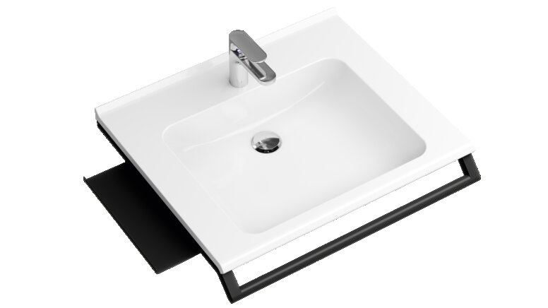 Das Prinzip der Flexibilität setzt sich auch in den Badezimmern fort. Eine praktische Lösung ist der modularer Waschtisch, der flexibel auf die individuellen Bedürfnisse der NutzerInnen reagiert. Er lässt sich schnell und einfach mit adaptiven Zusatzfunktionen wie Ablagen oder einer Handtuchhalterung erweitern und wieder zurückbauen. So finden alle Produkte für die tägliche Routine ihren Platz in greifbarer Nähe und fördern die Praktikabilität des temporären Wohnens.