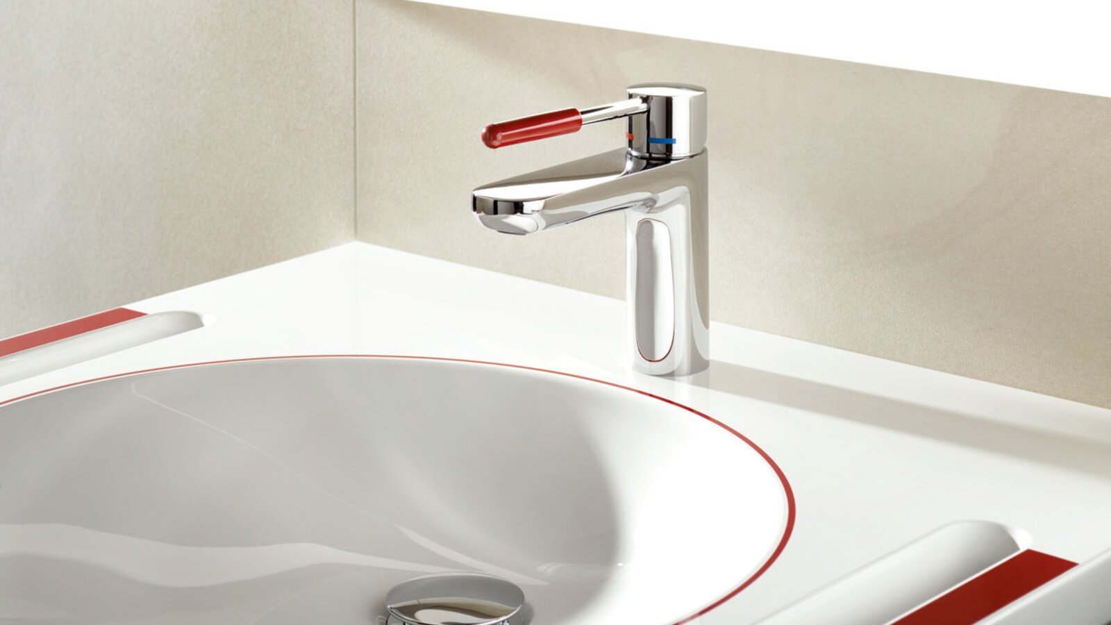 Rot ist außerdem bei abnehmender Sehfähigkeit im Alter oder inoperablen Augenerkrankungen, wie beispielsweise einer Makuladegeneration, die Farbe, die am leichtesten registriert wird. Somit eignet sich der Demenz-Waschtisch auch für Menschen mit altersbedingten Seheinschränkungen, bietet Orientierung und fördert die Selbstständigkeit.