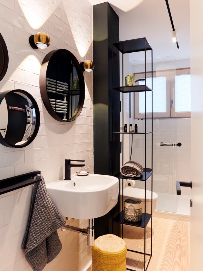 The redesign of the apartment was based on the universal design concept. The bathrooms were fitted with Italian Metro tiles, a bathtub and shower from Kaldewei as well as accessories and comfort products from the System 900 design line in matt black from HEWI.