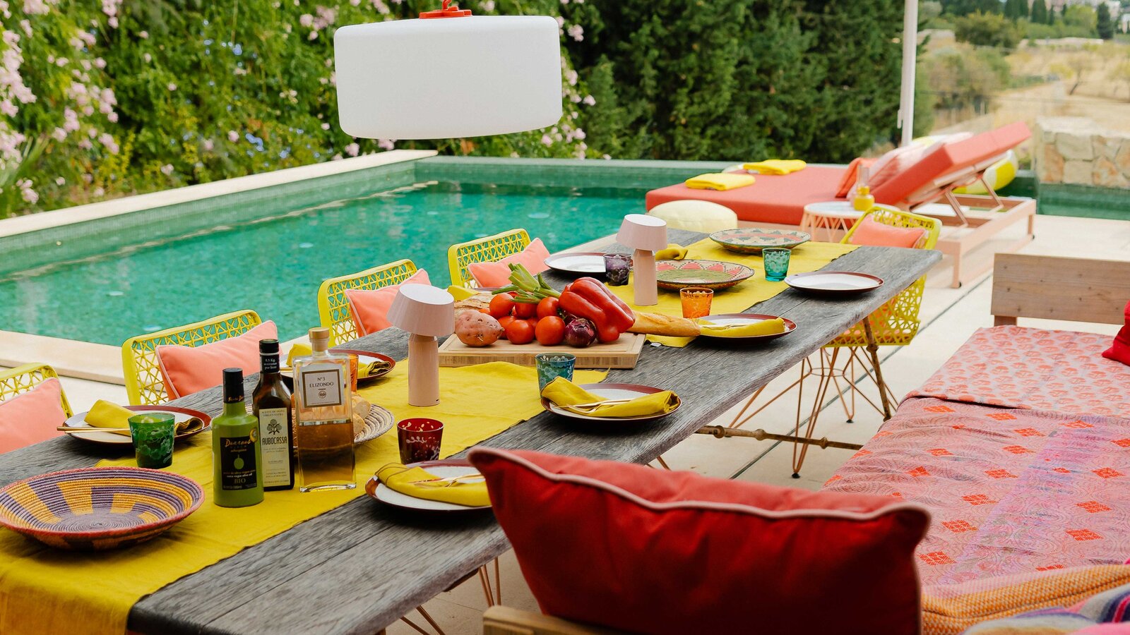 On the popular holiday island of Majorca, a colourfully designed holiday home invites guests to enjoy the Mediterranean and unwind under shady trees. The house is secluded in the heart of Mallorca - the location is characterised by its peace and tranquillity, making it a particularly appealing place to relax on holiday.