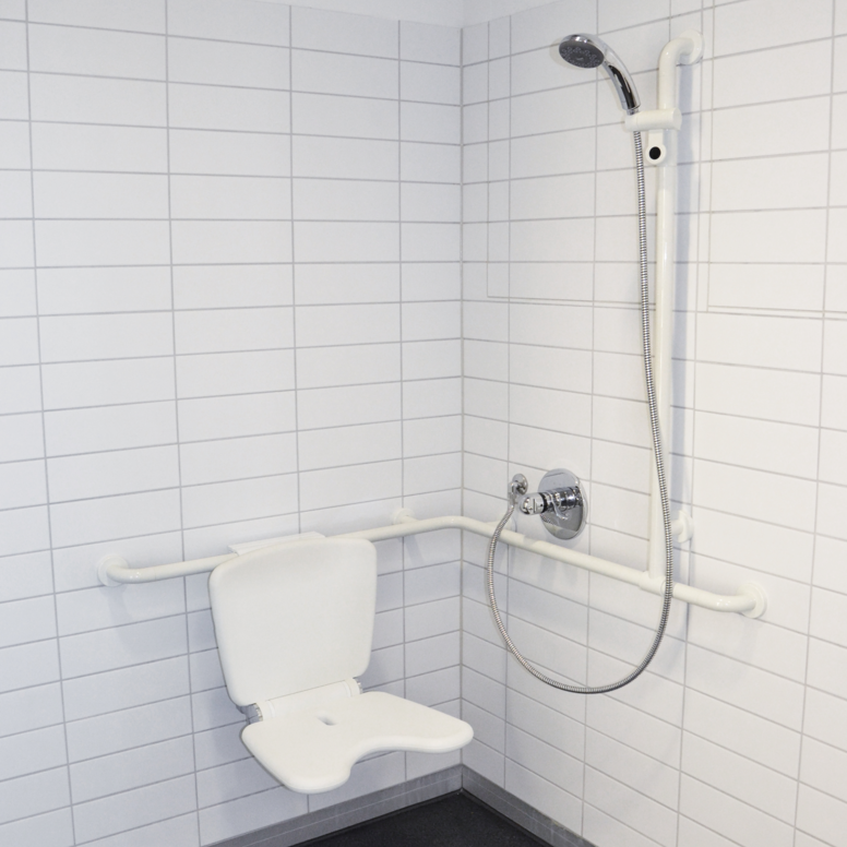In contrast to this is the administration and seminar complex, which is transparently designed with a glass façade and offers, for example, a maximum of flexible use and networking through decentralised technology. The contrast between open and closed is reflected in the chosen black and white contrasts. In the laboratory area the walls are black and the floors are made of white epoxy resin. In the seminar area, on the other hand, the walls are white and the floors are covered with black carpet. The dynamic shape of the administration building is reflected in the flowing form of the door handles. Here series 120 in black was used.