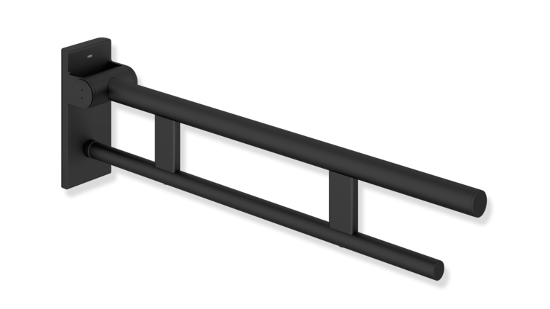 The WARM TOUCH hinged support rail offers you a high level of comfort at the toilet or washbasin and combines the tactile benefits of polyamide with the high-gloss look of chrome.