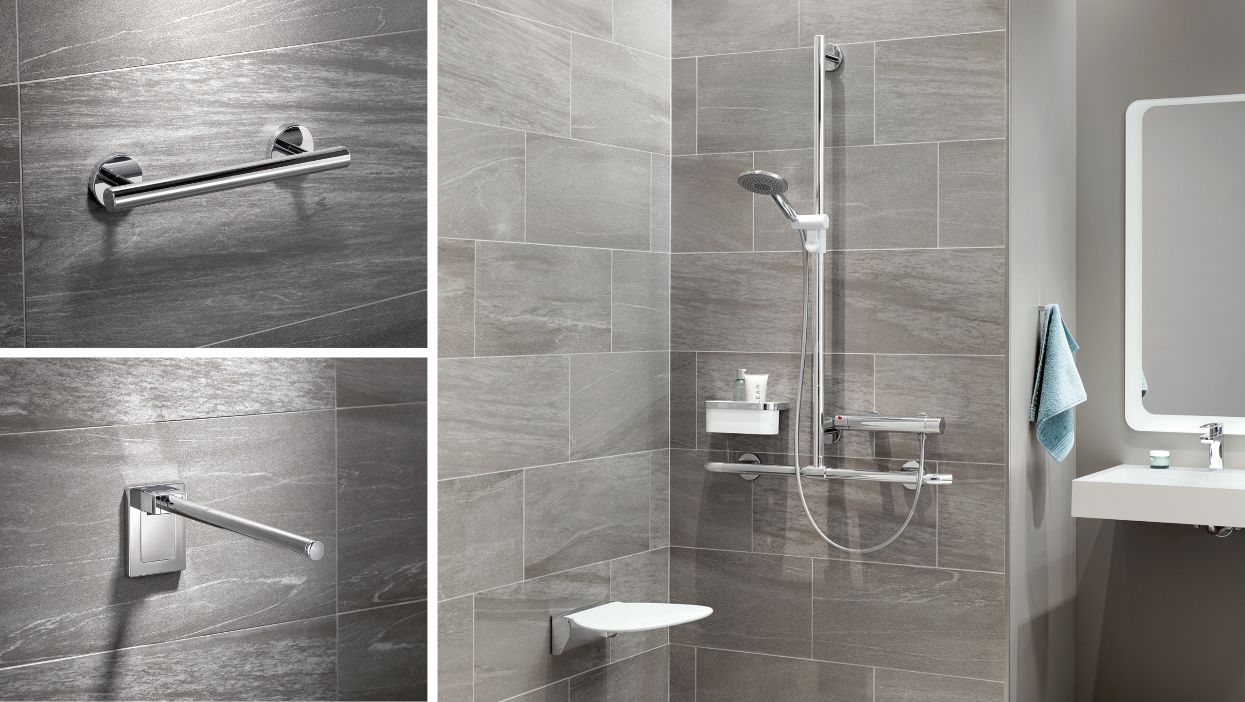 System 900 inextricably combines functionality and design. The products support you in your daily routine and allow self-sufficiency. With their ergonomic design, they ensure safety and make your modern bathroom more comfortable.