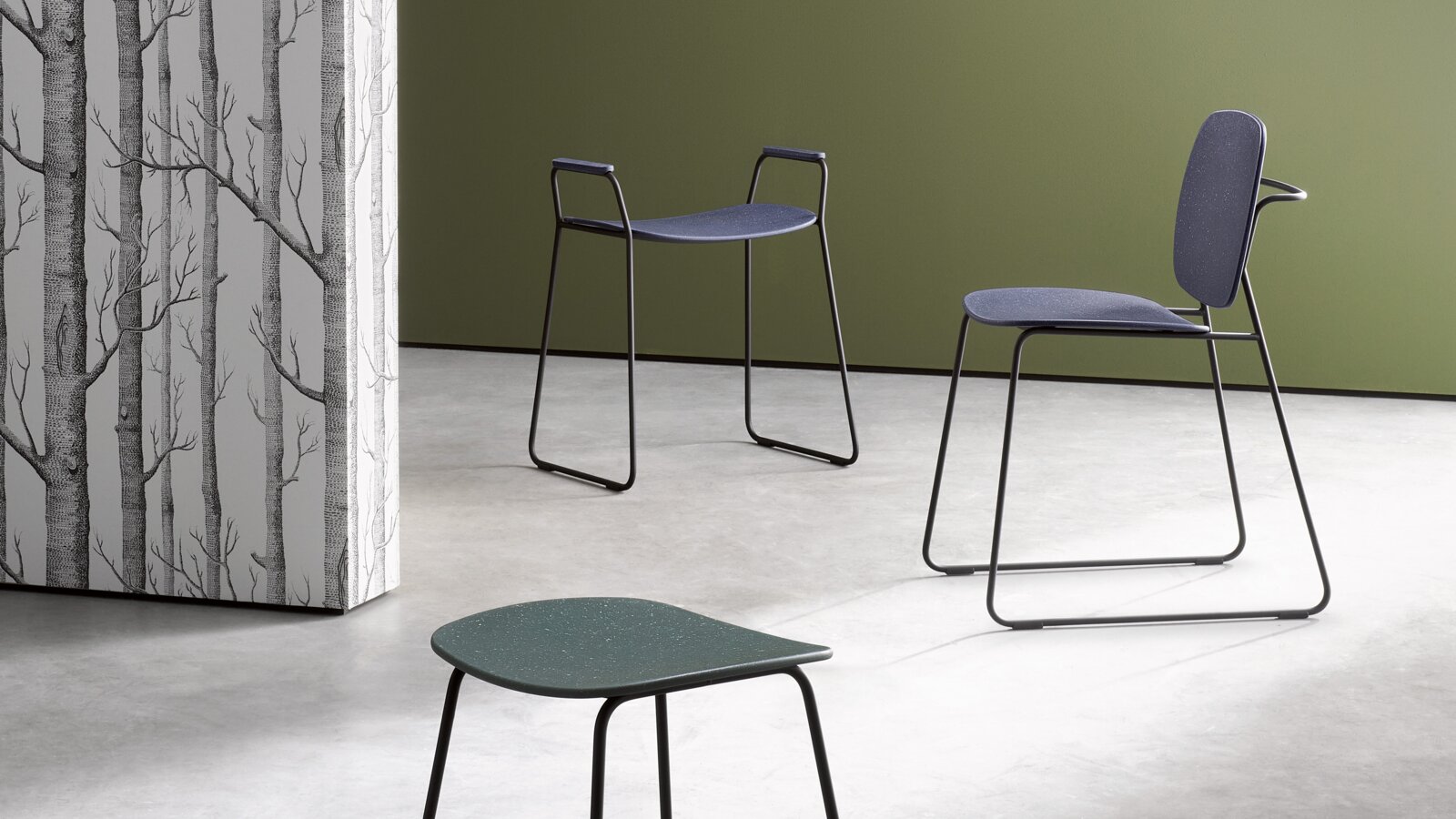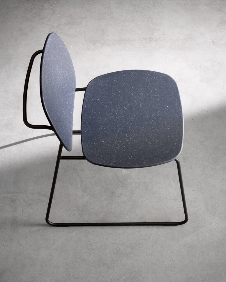 Susan Herrmann: Our Re-Seat family is based on a slender round tube design made of metal, which is optionallypowder-coated in black or high-gloss chrome-plated. As already mentioned, the seats, backrests and armrests of the Re-Seat family are made of post-industrial recycled material, which makes each piece of bathroom furniture unique and is the most special feature of the products.