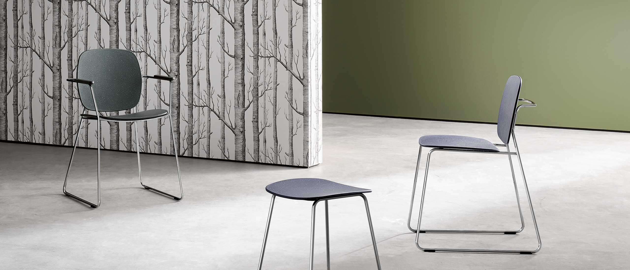 The frames of the seating options are now also available in two colours, increasing the design variety. In addition to the existing frame in matt black, a high-gloss version with chrome details is now also available.