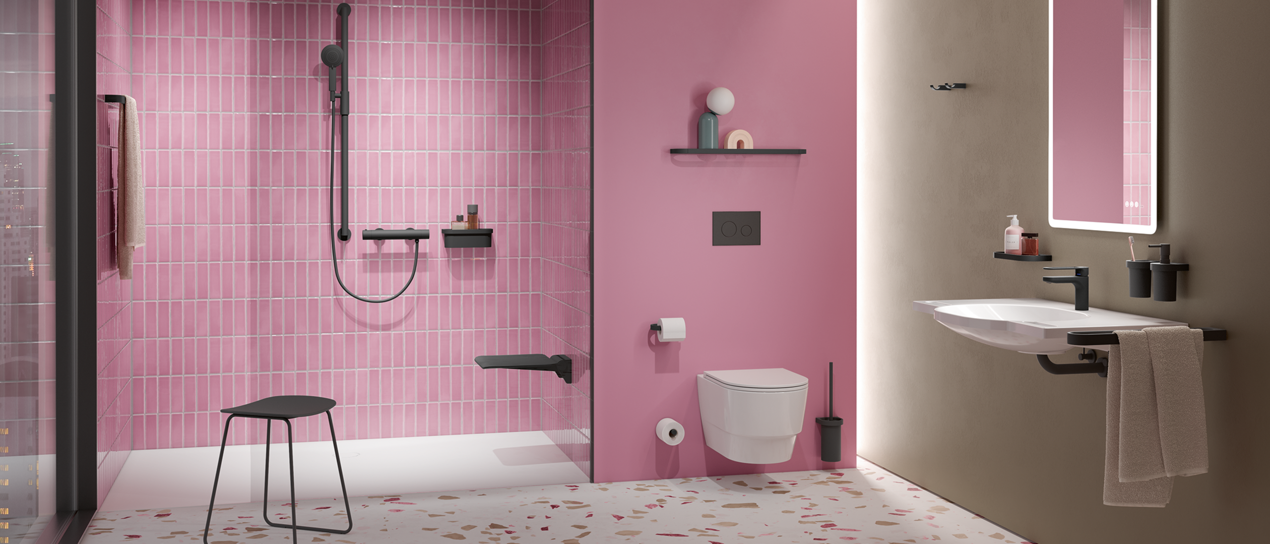 With shower seats, stools, support rails, hooks or shower holder systems, thermostats, shower curtains and shower shelves, you can design accessible showers and provide your customers with a comfortable showering experience.