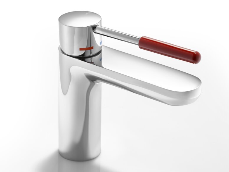 The single-lever washbasin mixers are equipped with an open lever. This allows operation with just one finger and makes them easy to use for people with motor impairments. HEWI offers a selection of child-friendly mixer especially for small users.