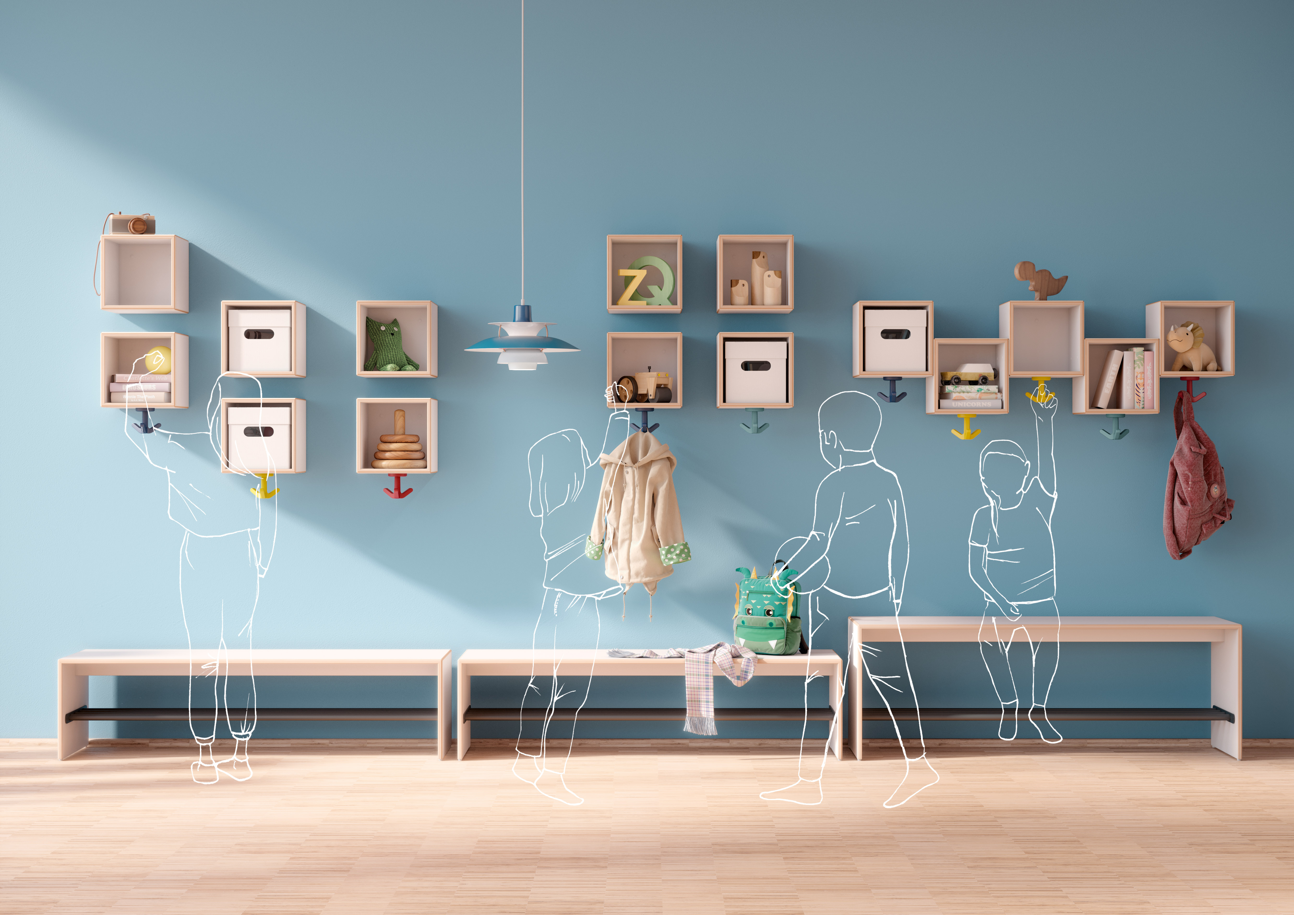 Equipment solutions for nurseries, primary and secondary schools have to meet a variety of requirements. They must be able to withstand high loads over a long period of time and therefore have a robust design. The architectural building structure should be adapted to the needs of the respective age group and therefore create an ambience that invites children to play and also to learn together. HEWI offers individual solutions for the respective building requirements - from the door to the bathroom.