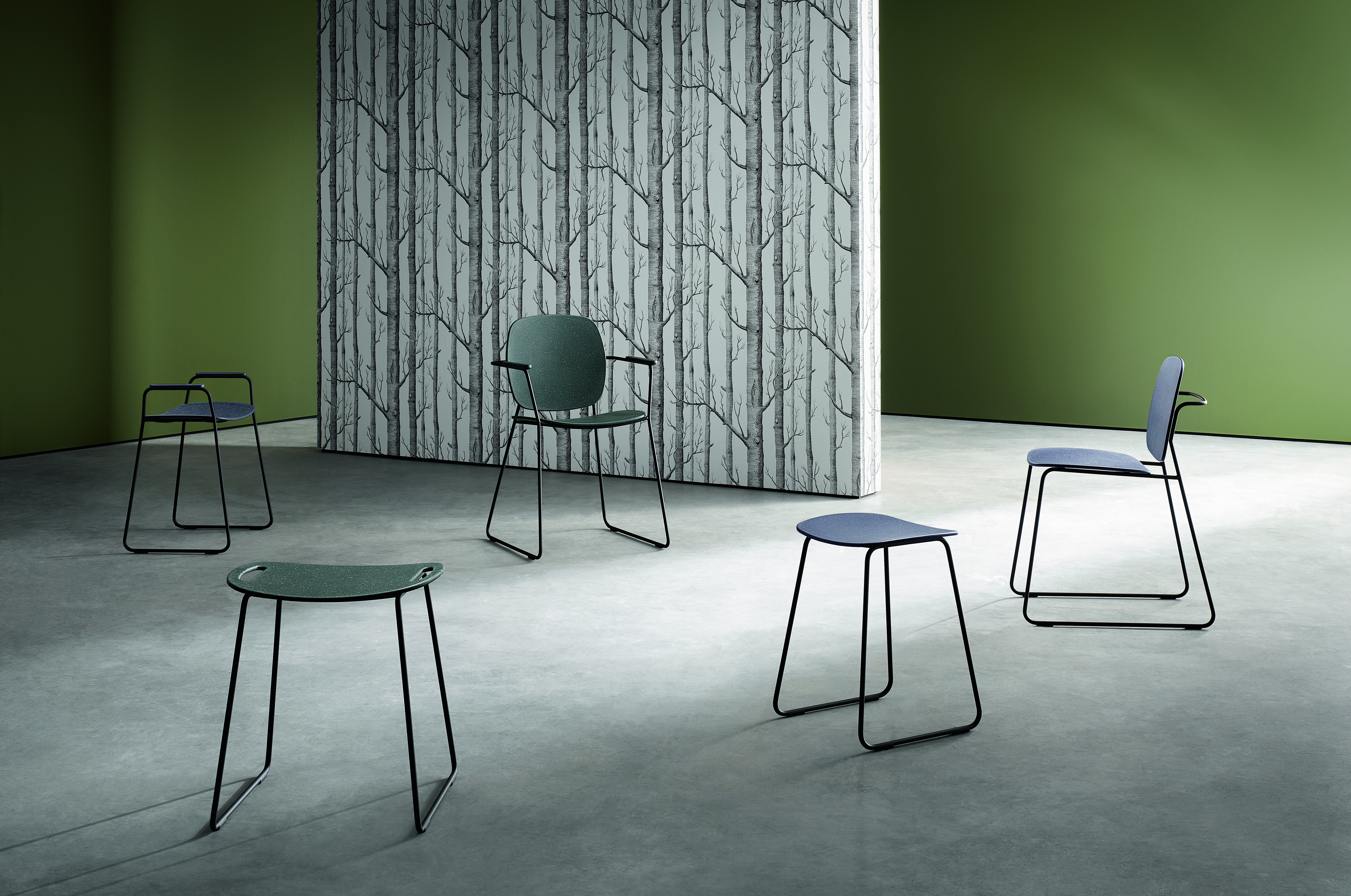 While recycled furniture was a niche product for a long time, the aspect of sustainability is currently bringing it more into focus. Today, economic feasibility, social compatibility and ecological necessity are determining factors for outstanding product design. At HEWI, pressing environmental issues have always been deeply rooted in the company, resulting in the high-quality, sustainable design and production of the new Re-seat family in forest green and dark granite grey.