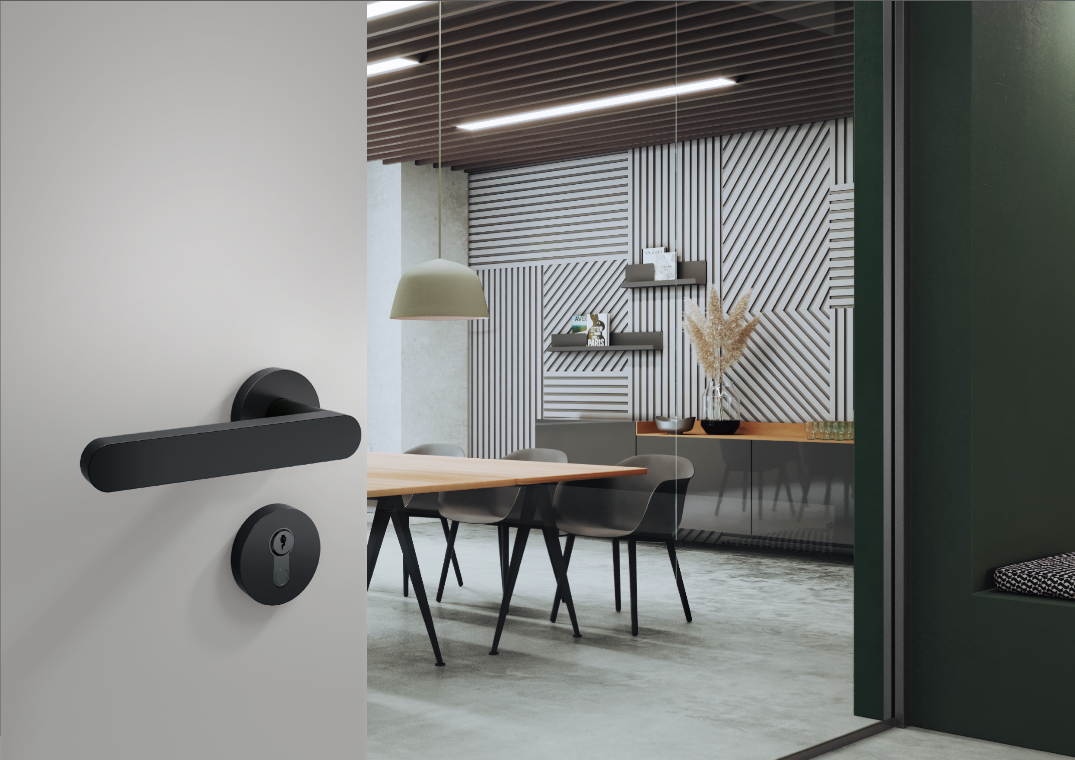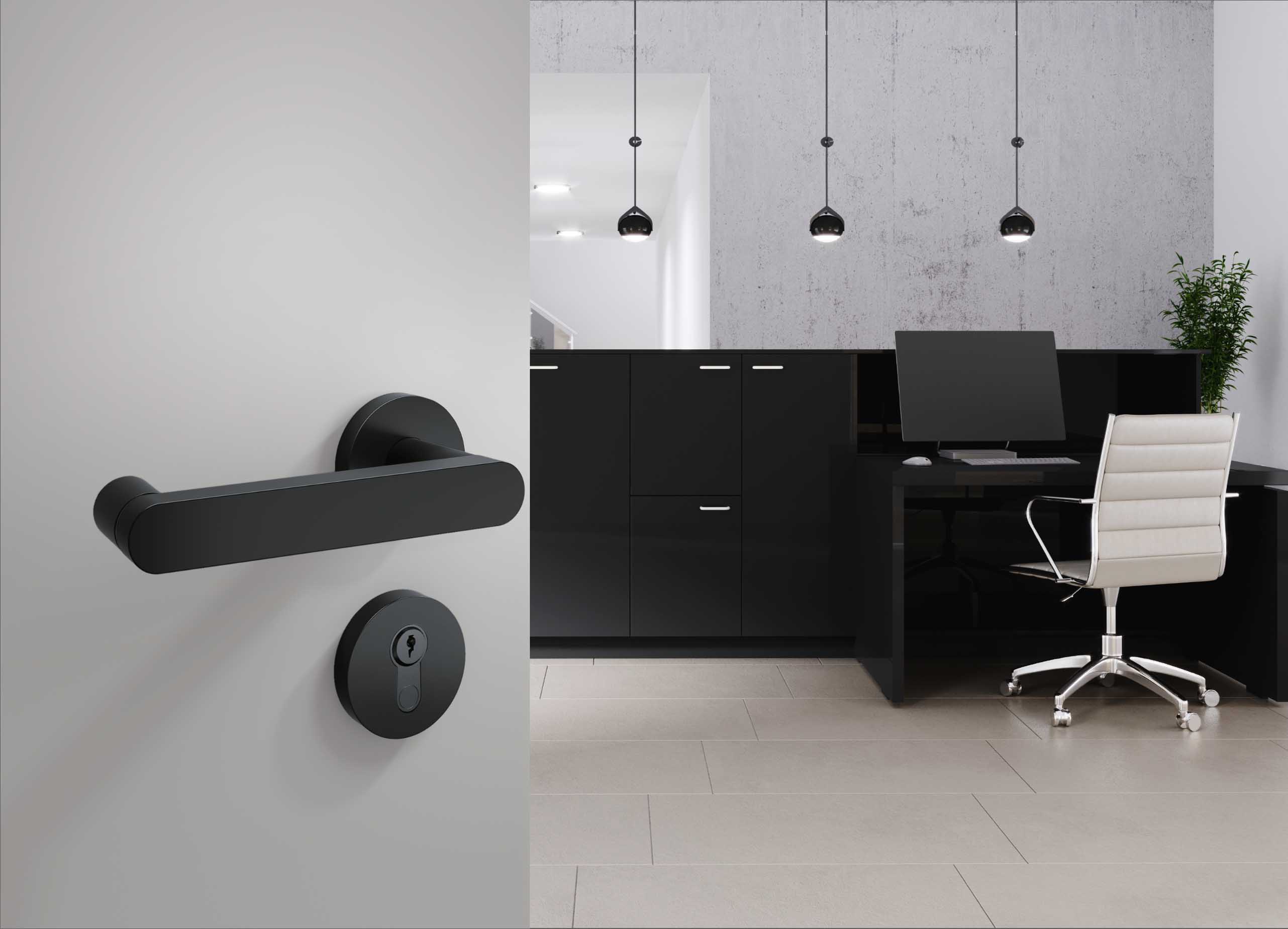 Series 270 is a fully comprehensive project range in accordance with DIN EN 1906 and DIN 18255. It is complemented by fittings for fire doors and escape routes, frame door handles as well as window handles, which allow for a fully comprehensive project furnishing. All models are designed in the proven H-technology for high-traffic commercial doors. The mounting technology fulfils the requirements of user category 4 according to DIN 1906 and is suitable for both the private sector and for heavily frequented office and commercial buildings. The solutions are available in matt black, satin stainless steel and up to 4,500 other powder colours. Clear edges and geometric lines characterise the purist design and are reminiscent of Tehrani's architecture in terms of form. The all-round edge also underlines the high precision and value.