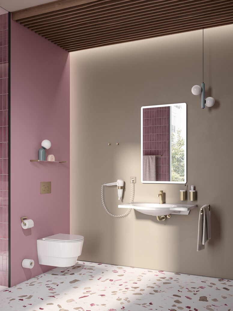 "HEWI products combine functionality and excellent design with the aspects of durability and sustainability, thus creating added value", emphasises HEWI Product Manager Florian Haude. The "Made in Germany" aspect is particularly important to HEWI. The company, based in Bad Arolsen, Hesse, has its own PVD system and continuously invests in state-of-the-art production facilities to ensure the highest quality and precision. HEWI's aim is flawless craftsmanship and high-quality aesthetics.