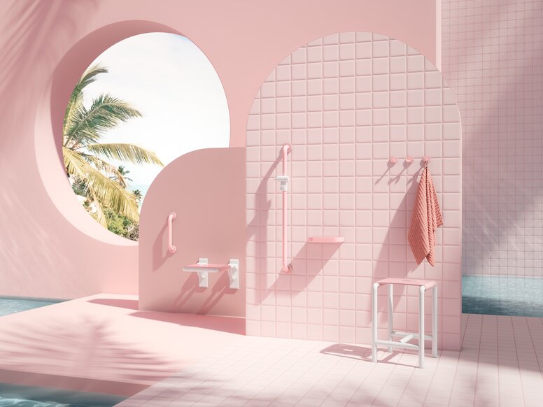 The color pink stands for optimism, self-confidence and hope. In architecture, it is increasingly perceived as a tone that evokes emotions and offers versatile effects. Depending on the setting, pink can be stimulating and inspiring or serve as a calming and harmonizing accent. In the Barbie x HEWI collection, this striking color choice is combined with HEWI’s minimalist, functional design to