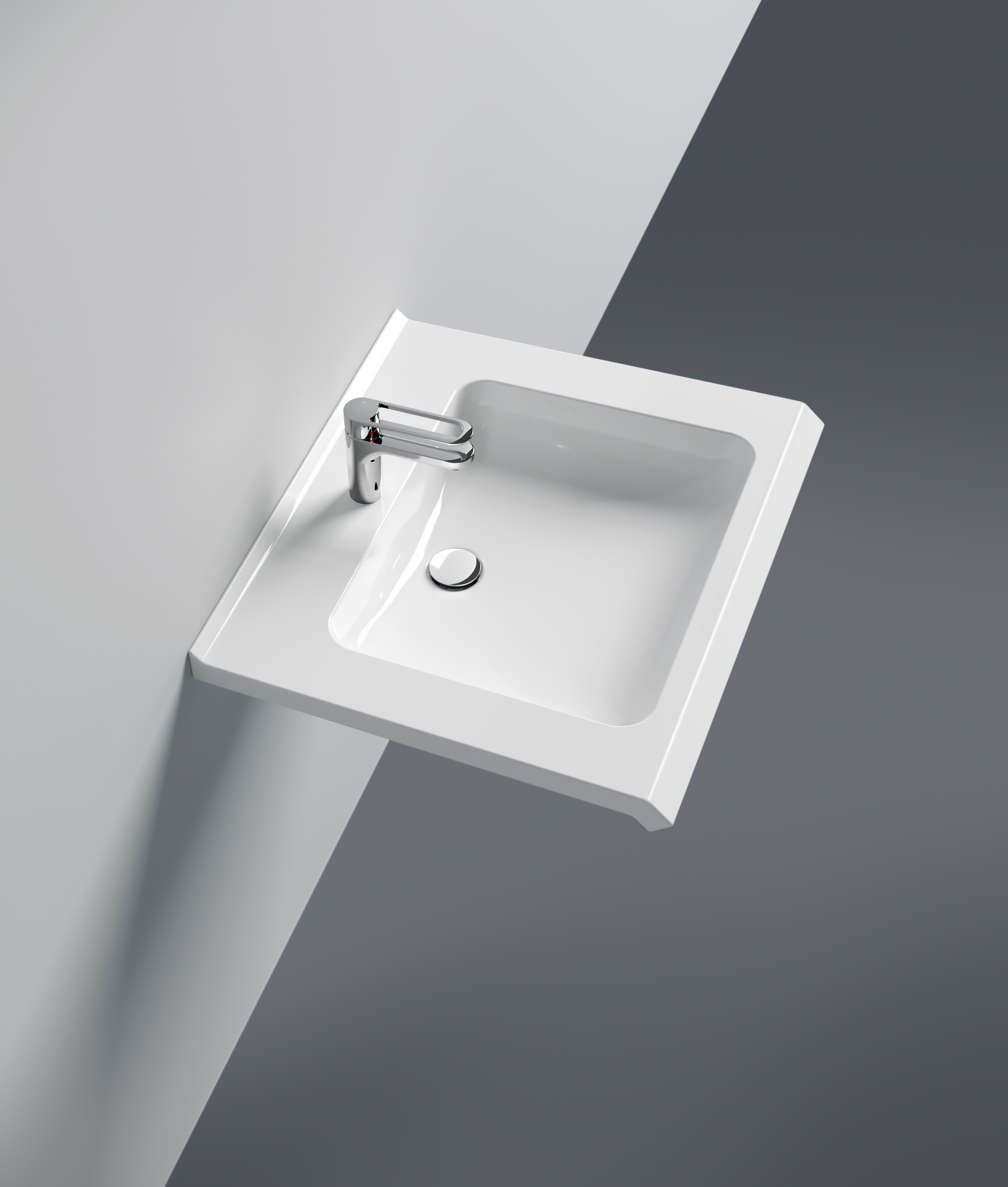Barrier-free bathrooms should be oriented towards the needs of different users. The new washbasin model meets these requirements. The purist design of the washbasin with concealed handle edge combines design requirements and functionality.
