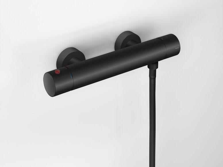 HEWI fittings impress with their design and quality. To increase the design diversity, fittings and HEWI shower thermostats in black matt now complement the product range. In this way, colour concepts can be supported or refined with black accents. The matt finish is achieved by a special finishing process which creates a particularly deep black matt colour. The powder coating. In addition to a noble appearance, it also offers the highest anti-corrosion protection and thus guarantees the durability of the products.
