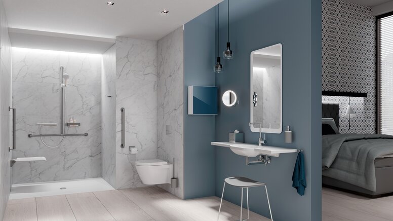 System 900 is het antwoord op de complexe eisen voor barrièrevrije badkamers. De producten zijn tot in het kleinste detail doordacht: ze overtuigen door functionaliteit, duurzame kwaliteit, uitgekiende montagetechniek en hygiënisch design. System 900 voldoet aan de eisen van de meest uiteenlopende gebouwtypes - in het gewone ziekenbad van een ziekenhuis, in de comfortafdeling van een privékliniek, in een rusthuis of in een exclusief bejaardentehuis.