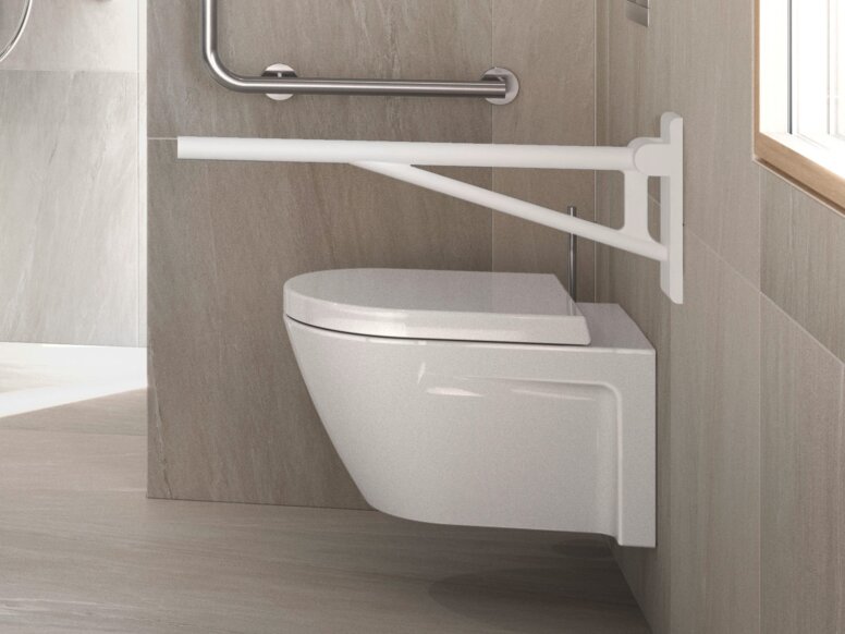 Inklapbare steunrails zijn noodzakelijk in barrièrevrije badkamers. Ze bieden belangrijke ondersteuning voor mensen met beperkte kracht en mobiliteit en verhogen de veiligheid in alle delen van de badkamer. Opklapbare steunrails worden bevestigd aan de wastafel, het toilet of de douche.